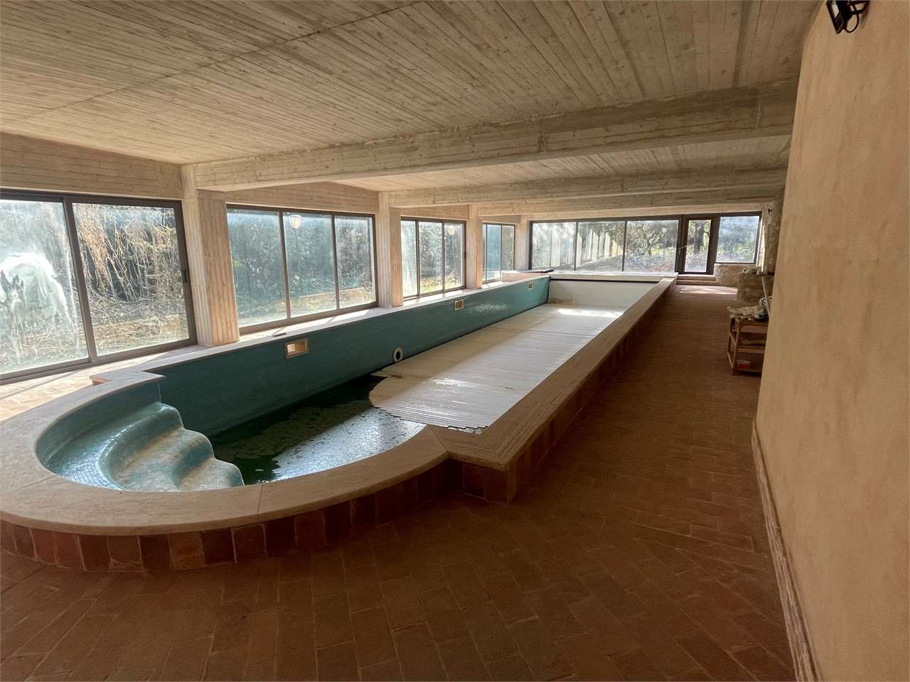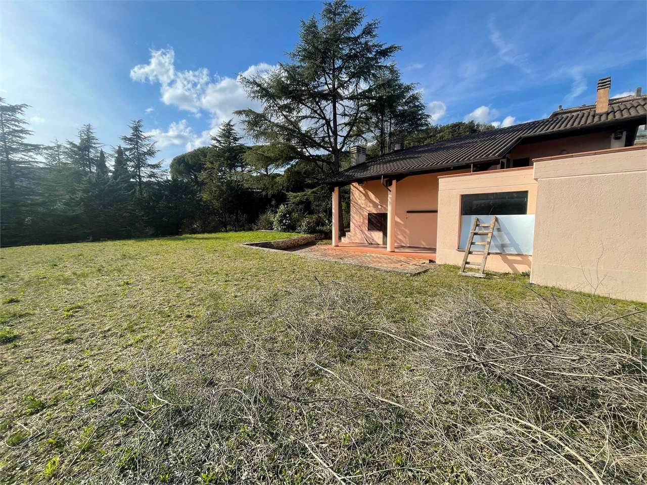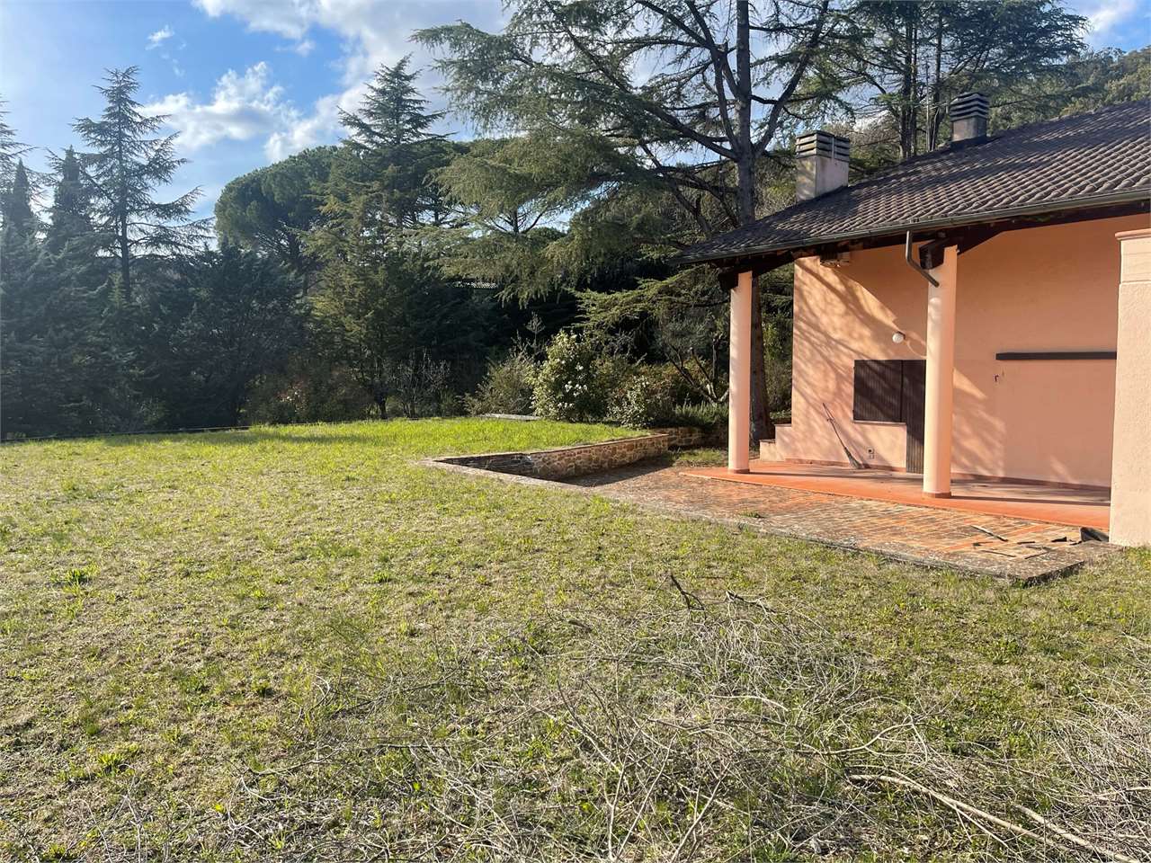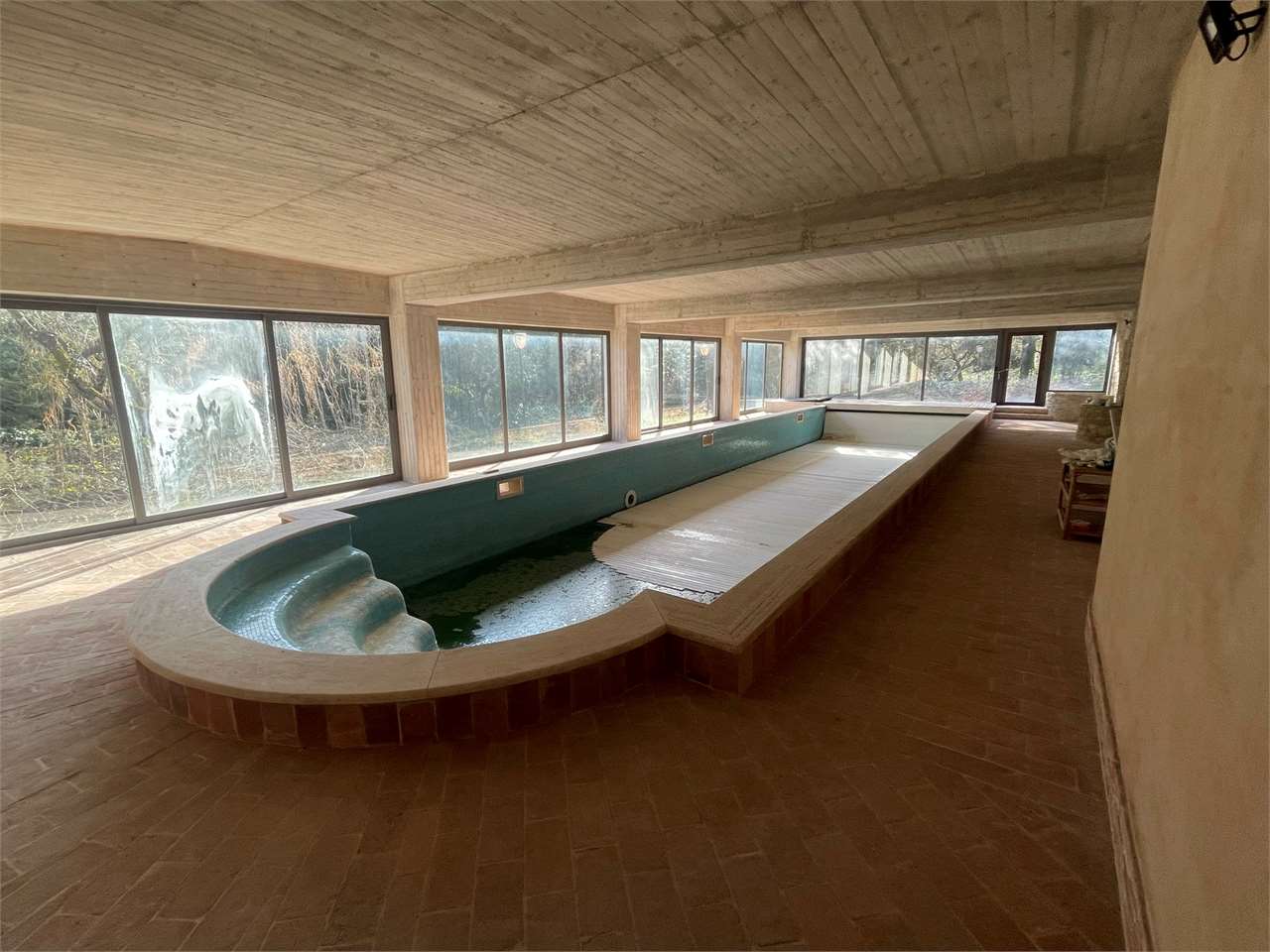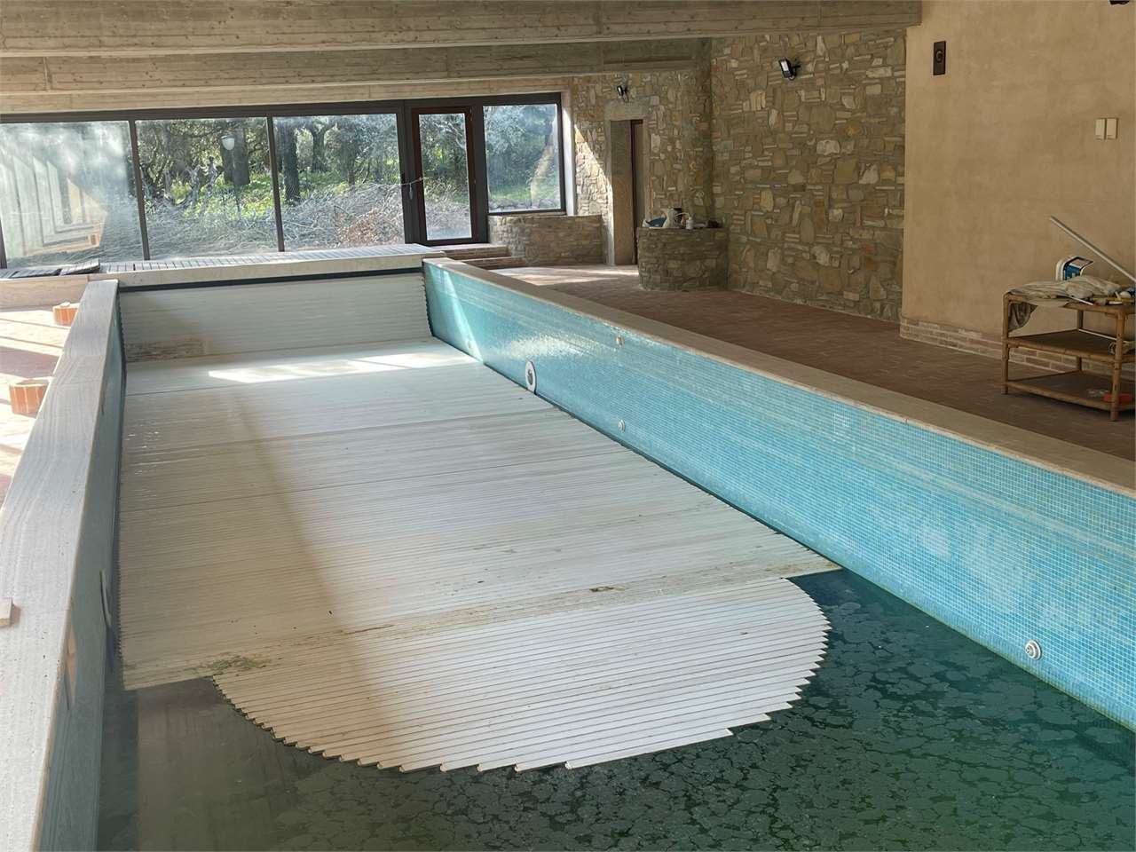 Villa singola con giardino di ca 3000 mq e piscina interna coperta. Signorile villa disposta su tre livelli. Piano terra seminterrato, grande piscina con ampie vetrate che si aprono sul giardino. Dotata di impianto di riscaldamento e riciclo d\'aria. Ambiente palestra. Taverna con angolo bar/cucina e camino. Locali tecnici e grande caveau. Piano terra ampio salone, cucina abitabile, camera/studio e bagno. Primo piano tre camere, due bagni e terrazzo abitabile. Garage esterno. Ottima esposizione. Zona residenziale a ridosso di tutti i servizi e del centro cittadino.