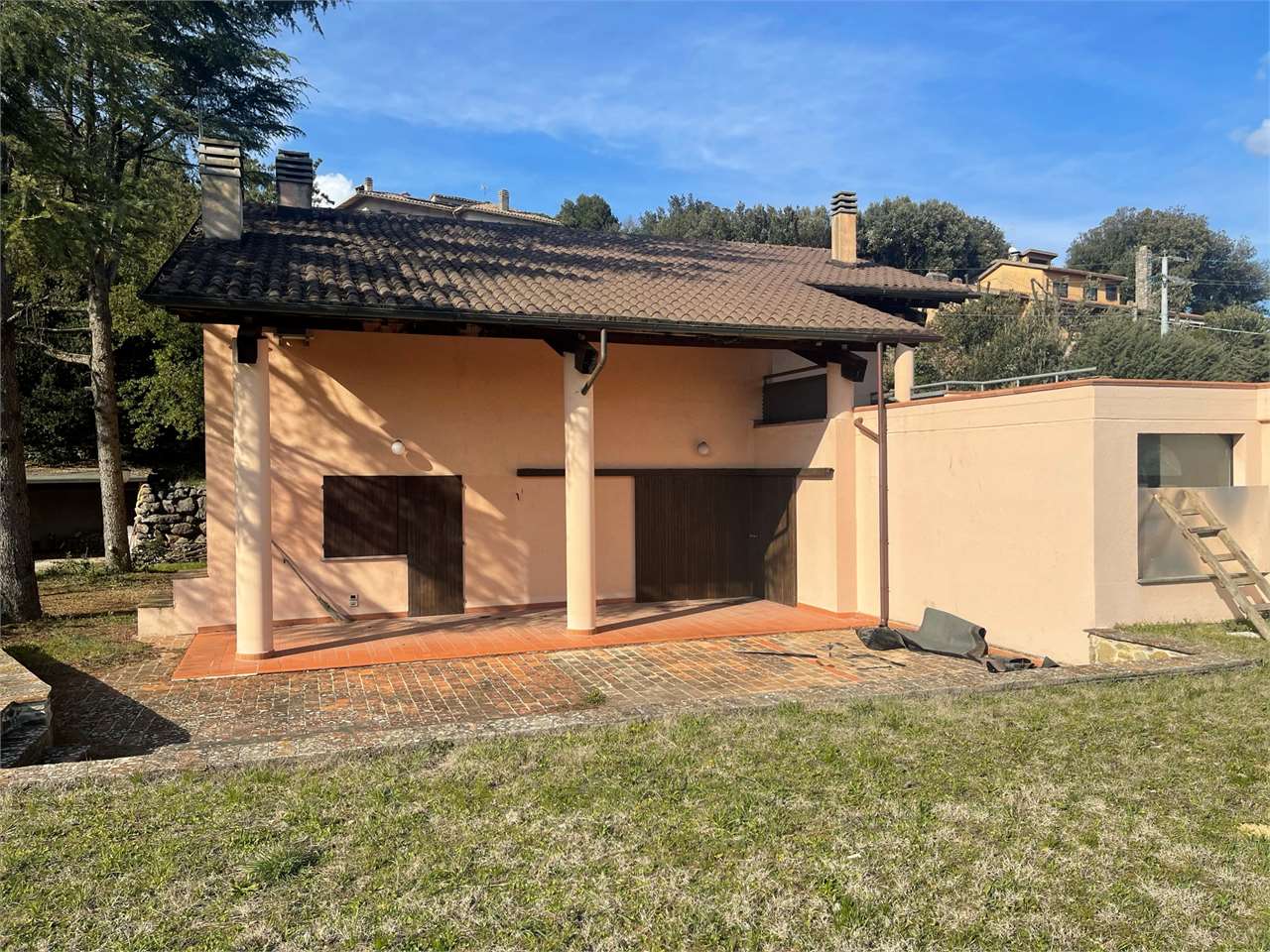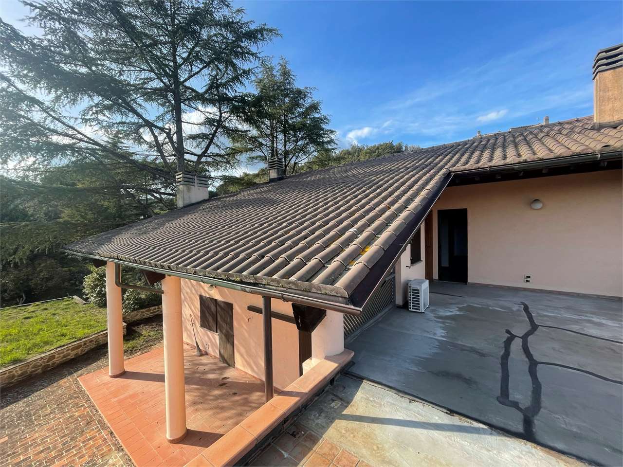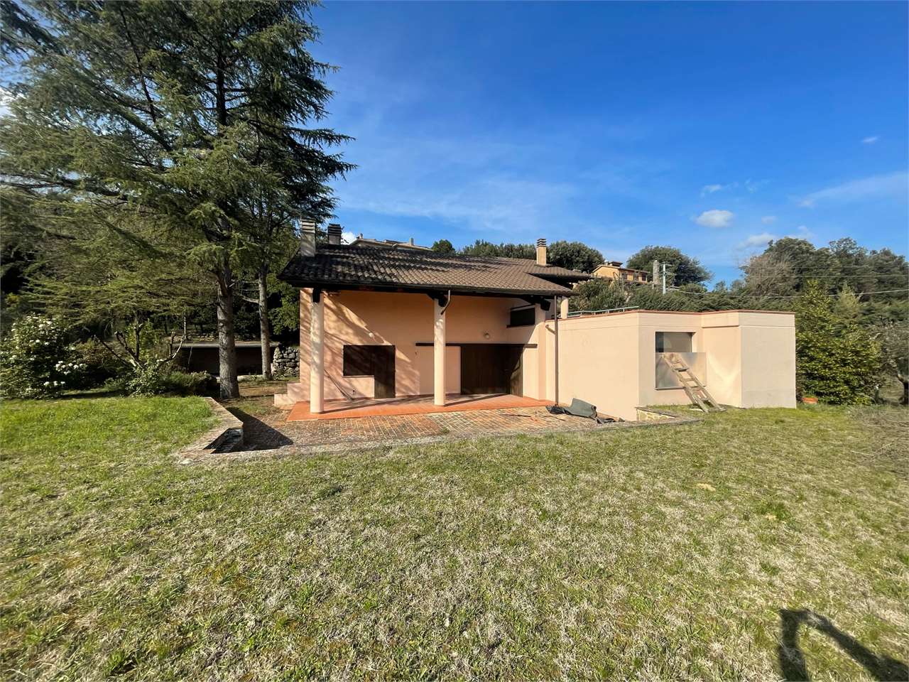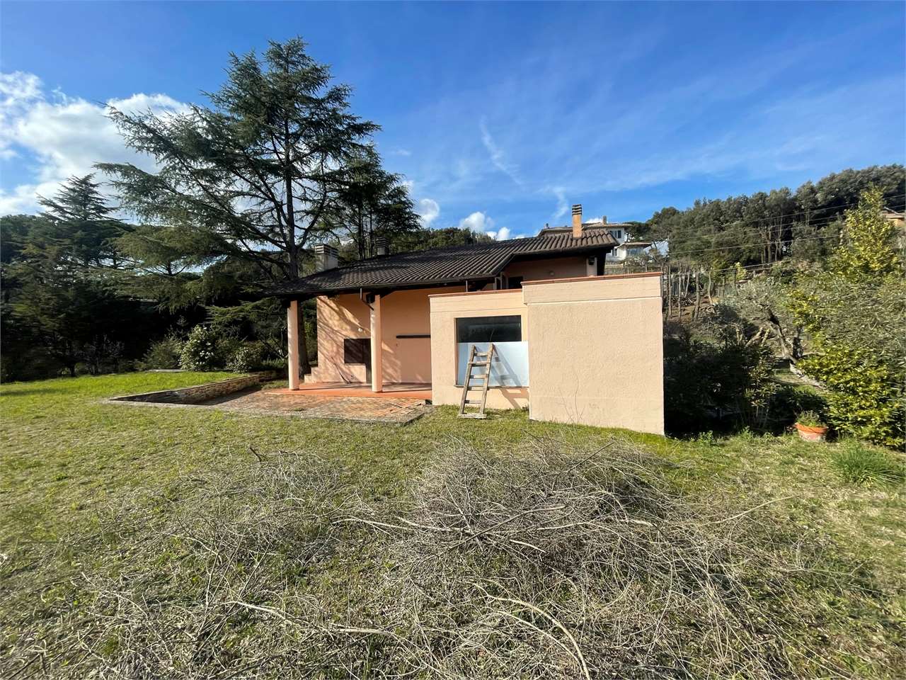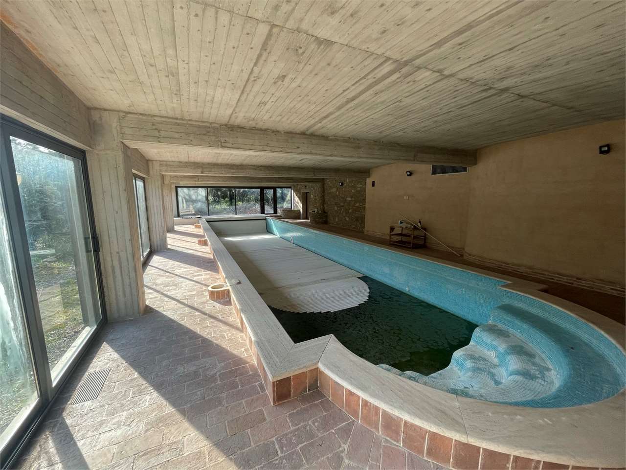 Villa singola con giardino di ca 3000 mq e piscina interna coperta. Signorile villa disposta su tre livelli. Piano terra seminterrato, grande piscina con ampie vetrate che si aprono sul giardino. Dotata di impianto di riscaldamento e riciclo d\'aria. Ambiente palestra. Taverna con angolo bar/cucina e camino. Locali tecnici e grande caveau. Piano terra ampio salone, cucina abitabile, camera/studio e bagno. Primo piano tre camere, due bagni e terrazzo abitabile. Garage esterno. Ottima esposizione. Zona residenziale a ridosso di tutti i servizi e del centro cittadino.