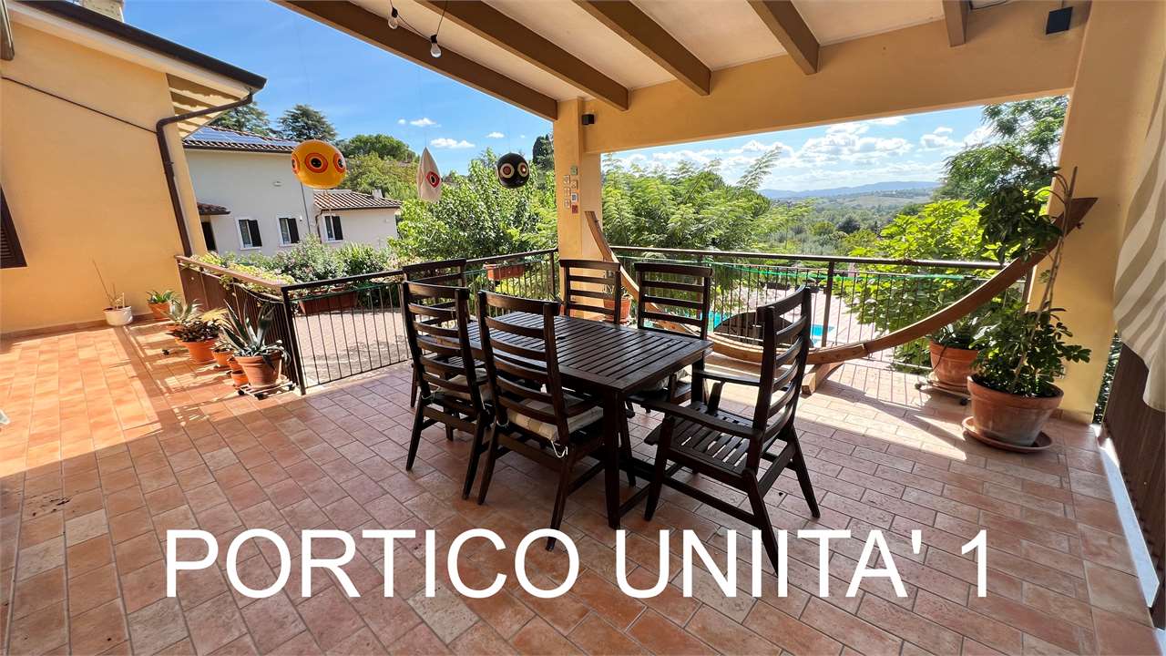 L’Immobiliare Trebbi è lieta di presentare un’interessante opportunità d’acquisto: \nuna splendida villa indipendente con piscina e campo sportivo polivalente, utilizzabile sia per il tennis che per il calcetto. \n\nL’immobile è situato in posizione collinare con esposizione prevalente a sud, all’interno dell’elegante contesto residenziale delle ville di Toppo Fontanelle, a Perugia.\n\nLa villa, recentemente ristrutturata, si distingue per le sue caratteristiche tecniche e abitative di qualità: è dotata di:\n- impianto fotovoltaico 6 KW;\n- riscaldamento e raffrescamento mediante ventilazione meccanica con pompa di calore;\n- riscaldamento tramite termo camino ventilato;\n- infissi in Pvc con doppio vetro;\n- persiane nuove in alluminio. \n- Impianto di allarme.\n\nAl suo interno ospita due grandi appartamenti, ciascuno con ingresso indipendente, ma collegati anche da una scala interna, soluzione ideale per chi desidera condividere la proprietà con familiari, senza rinunciare alla propria autonomia e privacy.\n\nAll’interno del lotto di circa 1.700 mq su cui insiste la proprietà, troviamo anche una comoda dependance di circa 100 mq su un unico livello, con un’altezza interna di 3,5 metri, utilizzabile per svariate attività ludiche, artigianali o, se necessario, trasformabile in una TERZA unità abitativa. \n\nSi precisa che, per la tipologia e l’omogeneità della struttura, non è possibile procedere con una vendita frazionata.\n\nGli spazi esterni rappresentano un autentico valore aggiunto: ampi portici, gazebo, terrazzi e balconi panoramici e un giardino curato offrono ambienti ideali per il relax e la vita all’aperto durante tutto l’anno. \n\nLa piscina, accessibile direttamente dal portico dell’appartamento al piano terra, è ben visibile anche dal piano superiore, che gode inoltre di un giardino riservato situato sul lato opposto della casa. \n\nCompleta la dotazione esterna il campo sportivo, originariamente concepito per il tennis e oggi adibito anche al calcetto, perfetto per momenti di svago e intrattenimento.\n\nGli ambienti interni, finemente rifiniti e particolarmente luminosi, si integrano in modo armonioso con gli esterni, contribuendo a creare un’atmosfera accogliente, elegante e funzionale. Questa residenza rappresenta una proposta unica per chi è alla ricerca di una soluzione abitativa di livello, immersa nella tranquillità e nella privacy, con ampi spazi e comfort moderni, ideale per vivere ogni giorno in un contesto esclusivo. \n\nSe volete maggiori informazioni o visitate questa proprietà per non perdere l’occasione ci acquistarla potete contattarci al ???? 075.5005034 o, se preferite, scriverci o chiamarci direttamente al ???? 335 5650247.\nPer scoprire questa e altre interessanti opportunità immobiliari, vi invitiamo a fissare un appuntamento personalizzato. Siamo qui per aiutarvi a trovare la casa dei vostri sogni.