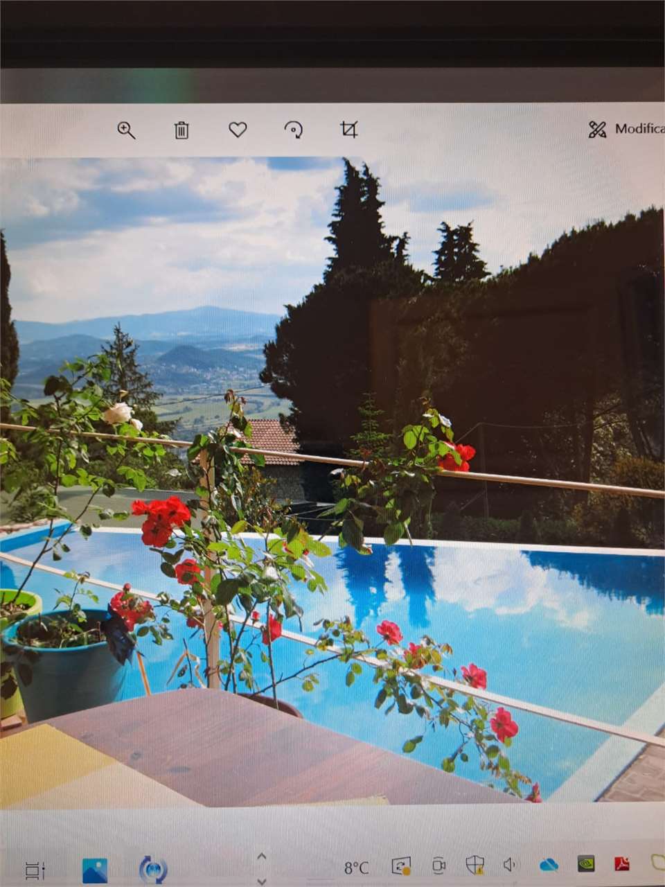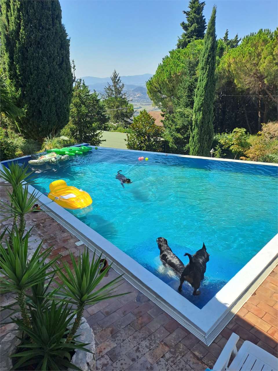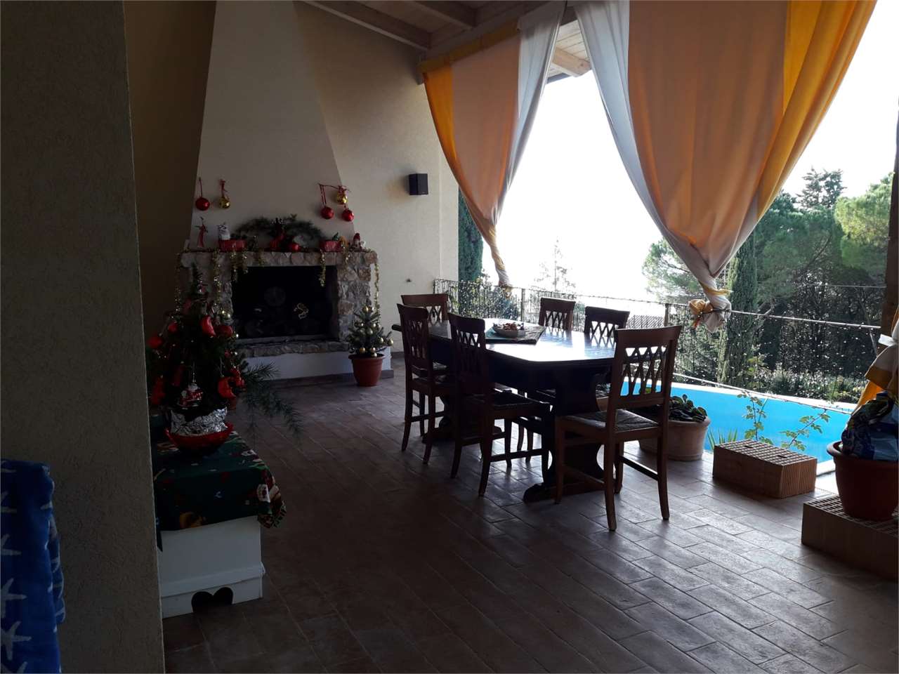 Villa di mq 426 , con piscina, costruzione recente. La casa e composta di due piani., piano terra : 4 camere da letto ogni una con bagno privato e vasca idromassaggio , cucina openspace , salotto ,dispensa., porticato , terrazza panoramica. Piano seminterrato è composto da un appartamento / camera da letto. sala con angolo cottura bagno con vasca, / garage , bagno di servizio con doccia, magazzino, cucina rustica , lavanderia , ambiente tecnico della piscina. TUTTI CONFORT : Riscaldamento a pavimento con impianto a metano., aria condizionata, rifiniture di pregio \nGiardino curato di circa mq 1500 con piscina a sfioro , Jacuzzi da esterno\n, 2 parcheggi per 5 machine . La Villa si presta benissimo anche per 2 nuclei familiari , o per un\'attività Turistico - ricettiva .