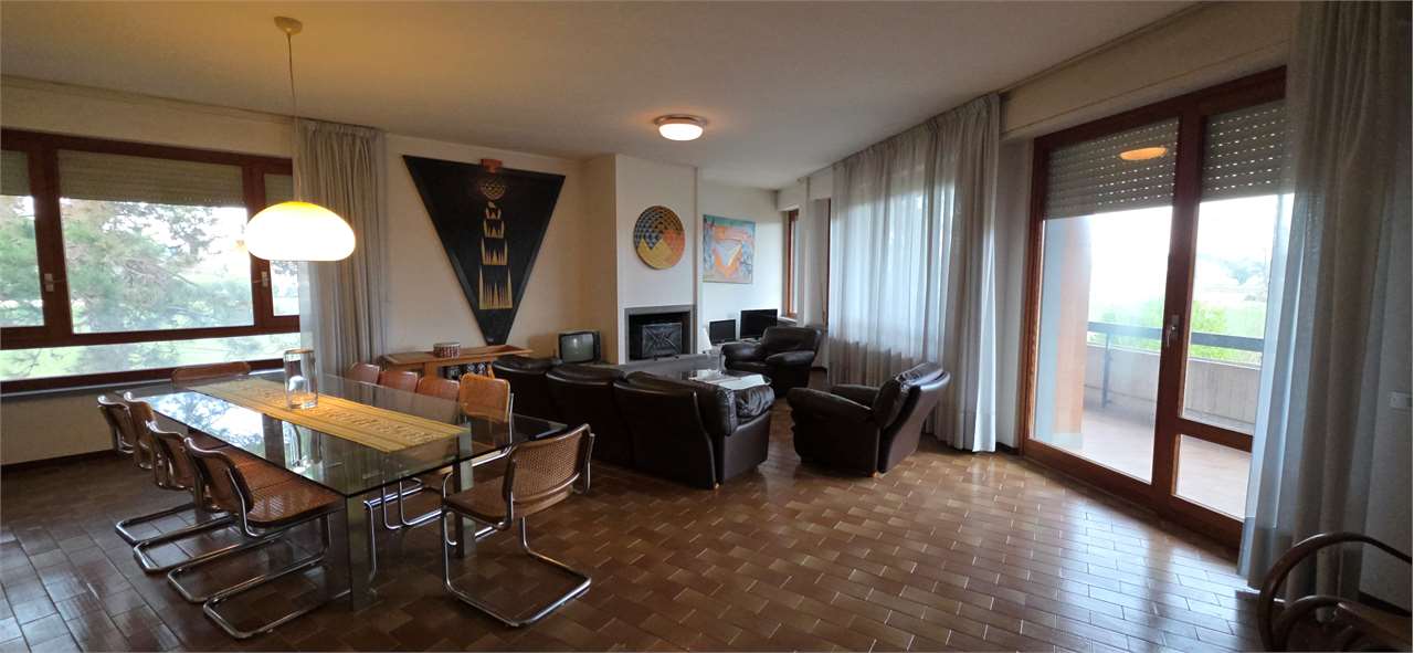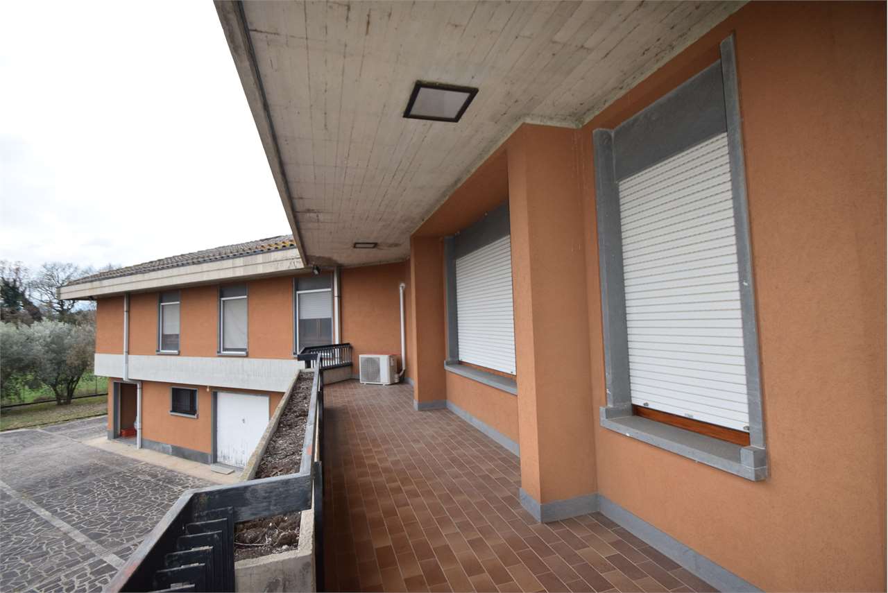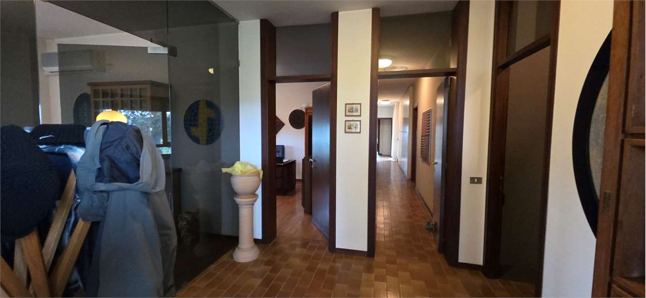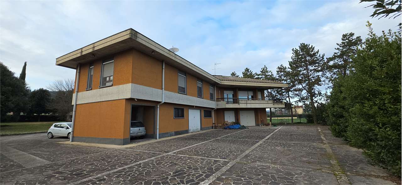 Prestigiosa villa unifamiliare con design Caravaggi in vendita – Sant’Andrea d’Agliano, Perugia\nIn una delle zone più tranquille e suggestive della campagna perugina, a Sant’Andrea d’Agliano, proponiamo in vendita una villa unifamiliare di grande pregio, categoria A/7, firmata dall’architetto Caravaggi. La proprietà, immersa nel verde e circondata da un ampio giardino privato, si sviluppa su circa 500 mq complessivi distribuiti in 13 vani, offrendo spazi generosi e un’atmosfera accogliente, ideale per chi cerca comfort, privacy e qualità abitativa. Costruita nei primi anni ’80 con materiali pregiati e solidi, questa villa incarna il fascino dell’epoca unito alla funzionalità degli ambienti ampi e luminosi, tipici delle residenze signorili.\nPiano Primo – L’appartamento principale\nLa zona abitativa principale si apre su un elegante ingresso che conduce a:\nAmpia cucina abitabile con dispensa e accesso al terrazzo,\nSalone doppio con caminetto e secondo terrazzo panoramico,\nTre camere da letto\nTre bagni,\nMansarda con possibilità di ricavare altre due camere.\nUn livello pensato per garantire comfort e vivibilità, perfetto per una famiglia numerosa o per una situazione ricettiva.\nPiano Terra – Spazi versatili e grande potenziale\nIl piano terra offre:\nUn grandissimo salone con caminetto,\nDue grandi garage con accesso diretto al piazzale retrostante,\nUn ampio spazio esterno con possibilità di parcheggiare fino a 20 auto.\nQuesta configurazione rende la proprietà estremamente flessibile anche per attività ricettive, come **B&B**, eventi privati o per chi desidera combinare abitazione e lavoro.\n\nPosizione e collegamenti:\nPur essendo immersa nella quiete della campagna, la villa è situata lungo una strada secondaria ben collegata e gode di una posizione strategica:\n15 minuti dal centro di Perugia,\n15 minuti dall’Aeroporto Internazionale di Perugia – San Francesco d’Assisi.\nUna soluzione ideale per chi cerca tranquillità senza rinunciare ai servizi principali.\nPerché sceglierla:\nQuesta villa rappresenta un’opportunità unica per chi desidera una casa:\n* Spaziosa e versatile,\n* Con il fascino delle costruzioni solide e di qualità,\n* In ottima posizione,\n* Con potenzialità sia residenziali che ricettive.\nLa proprietà necessita di normale manutenzione ordinaria, ma conserva intatto il valore di un’architettura prestigiosa e di ambienti ampi e confortevoli.\nAPE \"G\"\n\nPrestigious detached villa with Caravaggi design for sale – Sant’Andrea d’Agliano, Perugia\nIn one of the quietest and most picturesque areas of the Perugia countryside, in Sant’Andrea d’Agliano, we offer for sale a highly prestigious detached villa, rated A/7, designed by the architect Caravaggi. Surrounded by greenery and a large private garden, the property extends over approximately 500 square meters in total, divided into 13 rooms, offering generous spaces and a welcoming atmosphere, ideal for those seeking comfort, privacy, and quality living.\nBuilt in the early 1980s with high-quality, solid materials, this villa embodies the charm of the era combined with the functionality of its spacious, bright rooms, typical of stately homes.\nFirst Floor – The Main Apartment\nThe main living area opens onto an elegant entrance hall that leads to:\nA large eat-in kitchen with pantry and terrace access,\nA double living room with fireplace and second panoramic terrace,\nThree bedrooms,\nThree bathrooms,\nAttic with the possibility of creating two additional bedrooms.\nA level designed for comfort and livability, perfect for a large family or a hospitality business.\nGround Floor – Versatile Spaces and Great Potential\nThe ground floor offers:\nA very large living room with fireplace,\nTwo large garages with direct access to the rear courtyard,\nA large outdoor space with parking for up to 20 cars.\nThis configuration makes the property extremely flexible for hospitality businesses, such as B&Bs, private events, or for those who wish to combine living and working.\nLocation and connections:\nDespite being immersed in the quiet countryside, the villa is located on a well-connected secondary road and enjoys a strategic position:\n15 minutes from the center of Perugia,\n15 minutes from Perugia San Francesco d\'Assisi International Airport.\nAn ideal solution for those seeking tranquility without sacrificing essential amenities.\nWhy choose it:\nThis villa represents a unique opportunity for those seeking a home:\n* Spacious and versatile,\n* With the charm of solid, quality construction,\n* In an excellent location,\n* With potential for both residential and hospitality.\nThe property requires normal maintenance, but retains the value of its prestigious architecture and spacious, comfortable rooms.\nAPE \"G\"