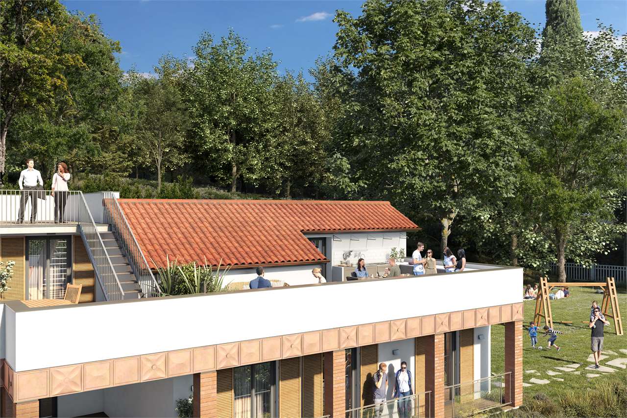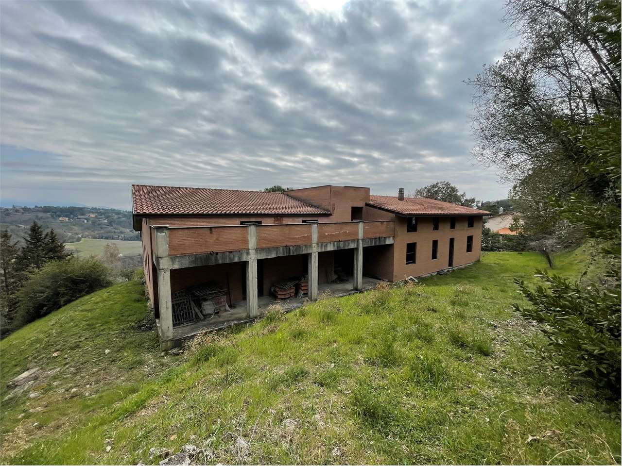 ZONA PREPO: In posizione panoramica, vendiamo villa da completare di ampia metratura. Ottima anche come soluzione bifamiliare.\nAppartamento A: piano terra con ingresso, soggiorno con portico, ampia cucina, 2 camere e 2 bagni. Piano superiore mansarda della stessa superficie del piano terra con grandi terrazzi.\nAppartamento B: piano terra con ampio soggiorno con portico (e scala che collega la mansarda di mq 120), cucina abitabile, 2 camere, 2 bagni.\nLa villa è inserita in giardino esclusivo di circa 3.500 mq con possibilità di realizzare una piscina. € 290.000 Cod. V/278 - Foto rendering