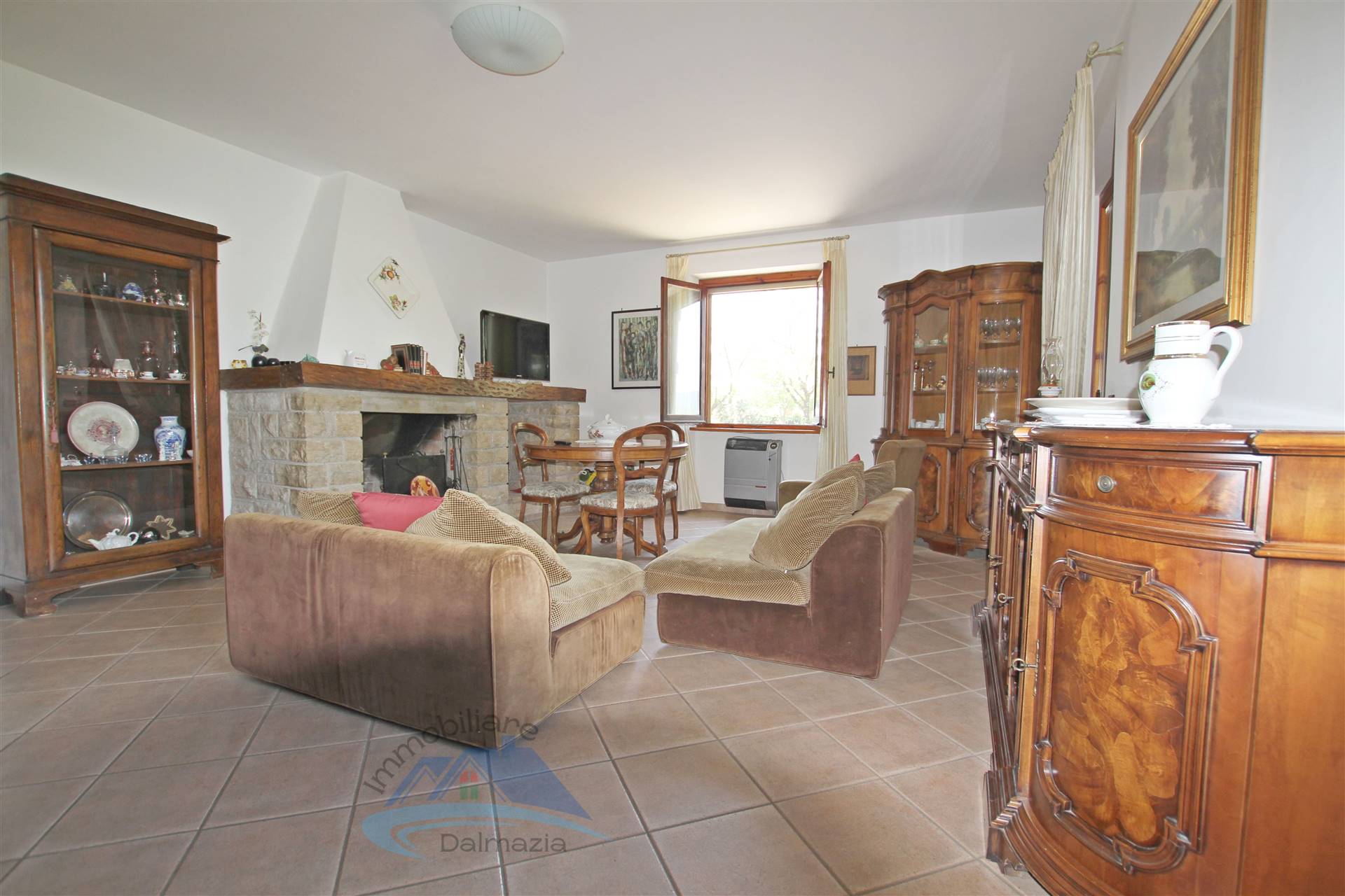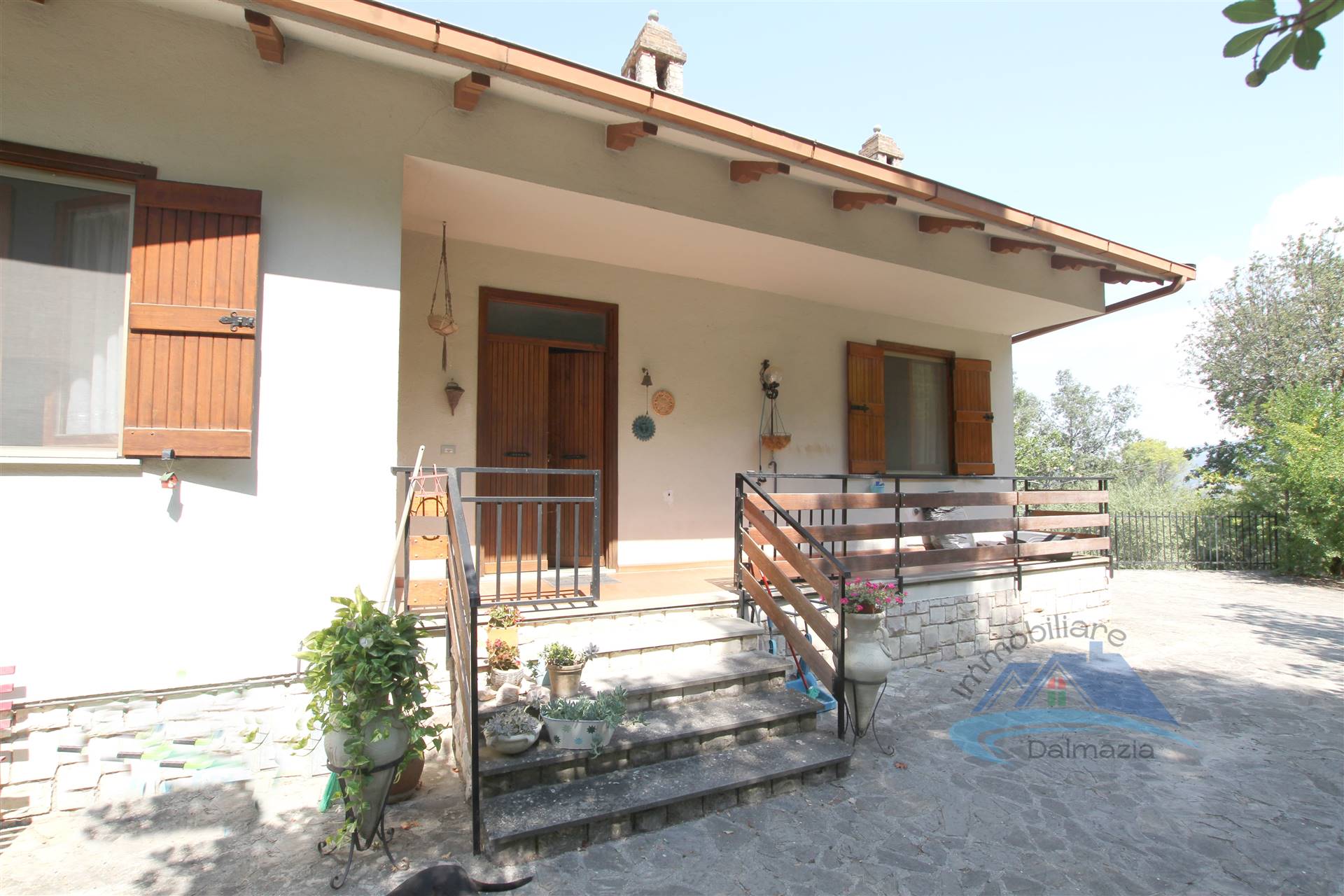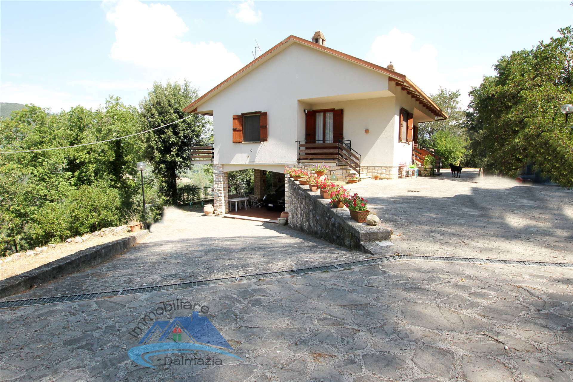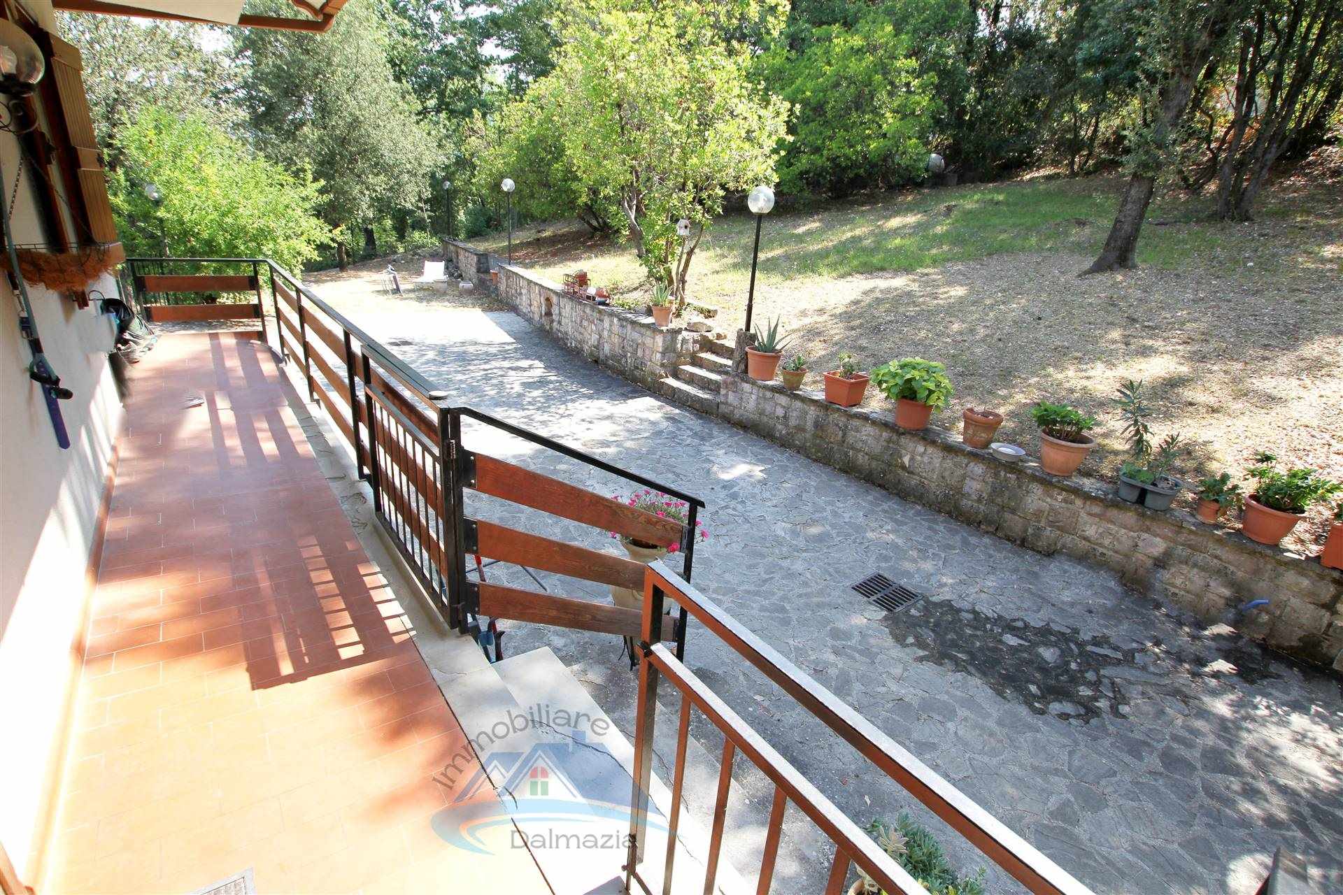 SCOPRILO SUBITODalmazia Immobiliare propone in vendita Villa unifamiliare immersa nel verde e nella natura, in zona collinare e più precisamente in Località Collepaese (Collestatte) a pochi minuti di auto da Terni. La proprietà completamente recintata e contornata da un parco di 5000 m2 è servita da ingresso con cancello automatico e strada lastricata con accesso diretto sul doppio ingresso della casa. Al piano terra/rialzato di 120 m2 accediamo alla zona giorno composta da ingresso, cucina abitabile con balcone, un salone luminoso caratterizzato ed impreziosito da un camino in pietra, terrazzo panoramico abitabile con affaccio sul verde. Zona notte composta da due camere ed un bagno con pavimentazione in parquet. Dal salone con una comoda scala in legno, abbiamo accesso al primo piano mansardato di 70 m2 parzialmente da rifinire e sistemare adibito a zona notte/ studio composto da tre vani, ripostiglio e bagno. Nel piano seminterrato di 80 m2 e collegato sia con scala interna che esternamente, troviamo una luminosa taverna con camino e porta finestra con accesso diretto sul portico, cucina e bagno. Completa la proprietà un terreno con bosco di 5000 m2. La villa costruita negli anni 80 è in buone condizioni generali ed è ideale per chi è alla ricerca di una soluzione indipendente con ampio spazio esterno, a pochi minuti di auto della città, in una zona circondata dal verde, beneficiando di un microclima ed alta qualità dell’aria ideali tutto l’anno. La proprietà completamente indipendente, è situata in un contesto residenziale contornato da altre Ville di pregio.