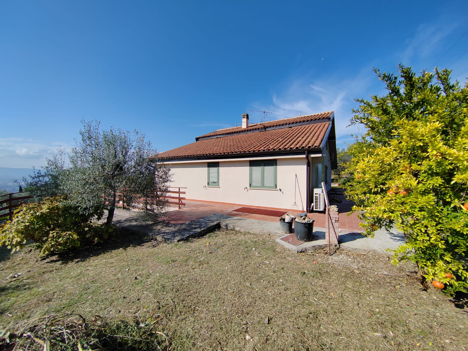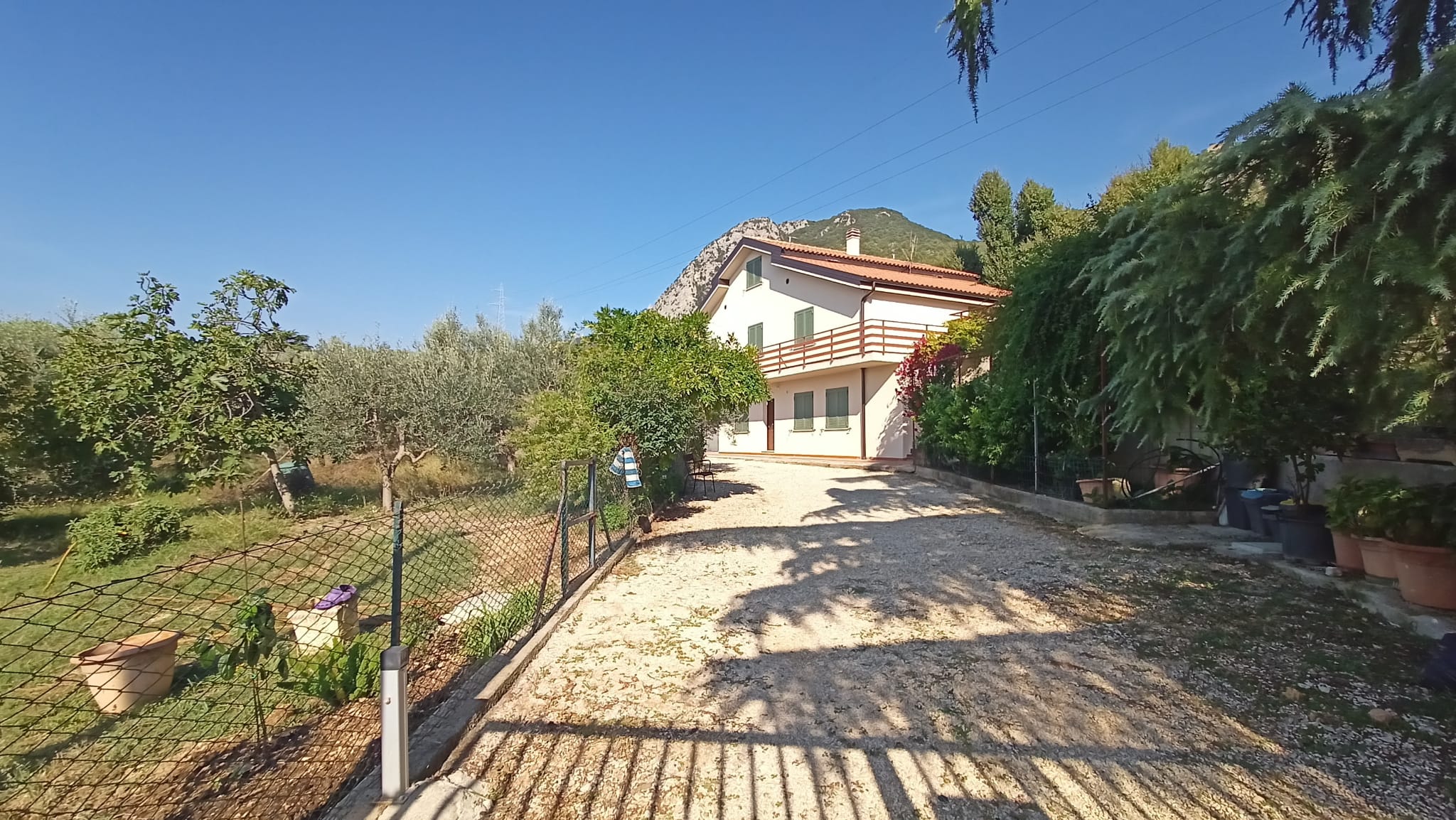 La villa si estende su una superficie di 250mq su due livelli distribuiti su 13 vani ed è circondata da 2250 mq di giardino. Attualmente l'immobile è suddiviso in due appartamenti ( già predisposti per poterli unire), uno al piano terra completamente ristrutturato di mq 92 così suddiviso: ampia zona giorno all'entrata con angolo cottura provvista di canna fumaria per installazione del camino, 2 camere da letto, 1 bagno con doccia. Riscaldamento a pavimento. Inoltre, è presente un garage di 57 mq per agevolare la comodità dei residenti.