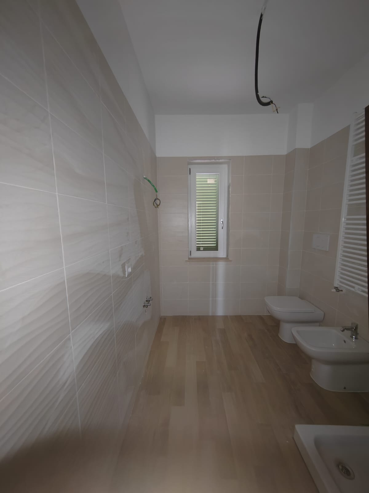 I pavimenti sono realizzati in gres porcellanato nella zona giorno, in parquet nella zona notte e in ceramica sia nella cucina che nei bagni.