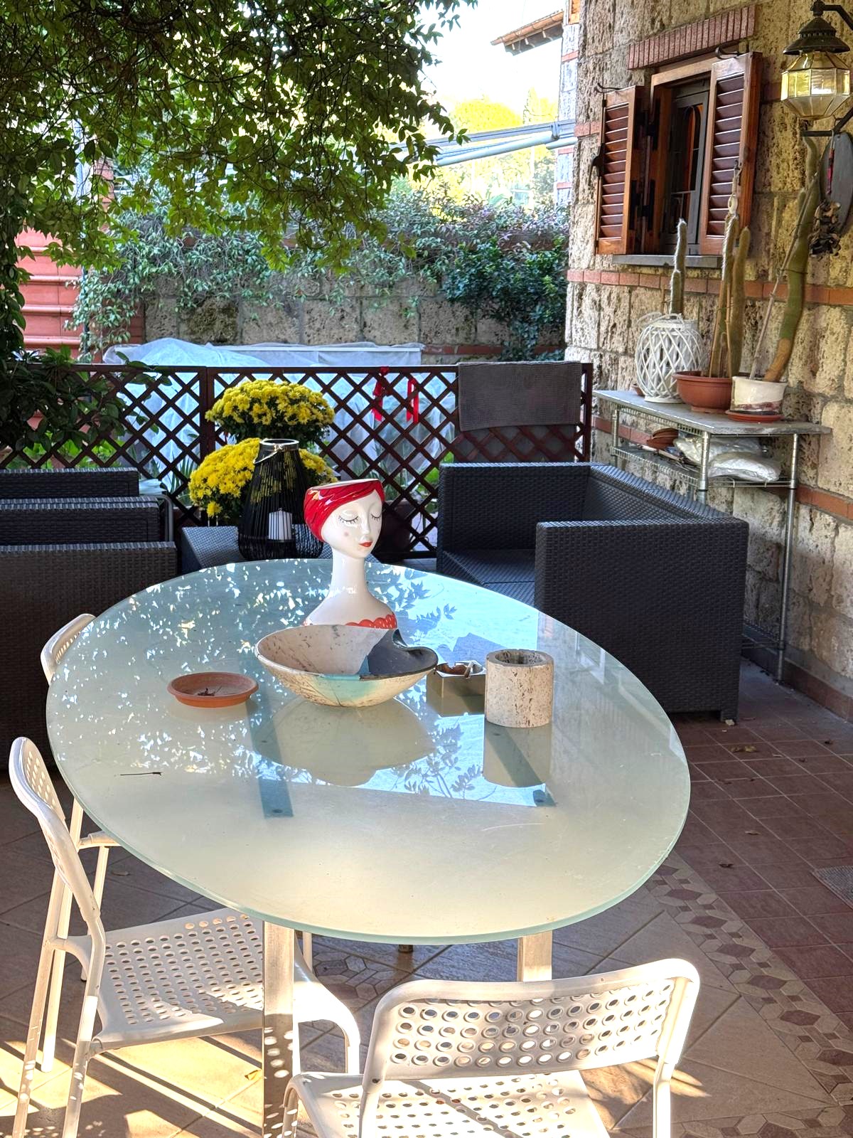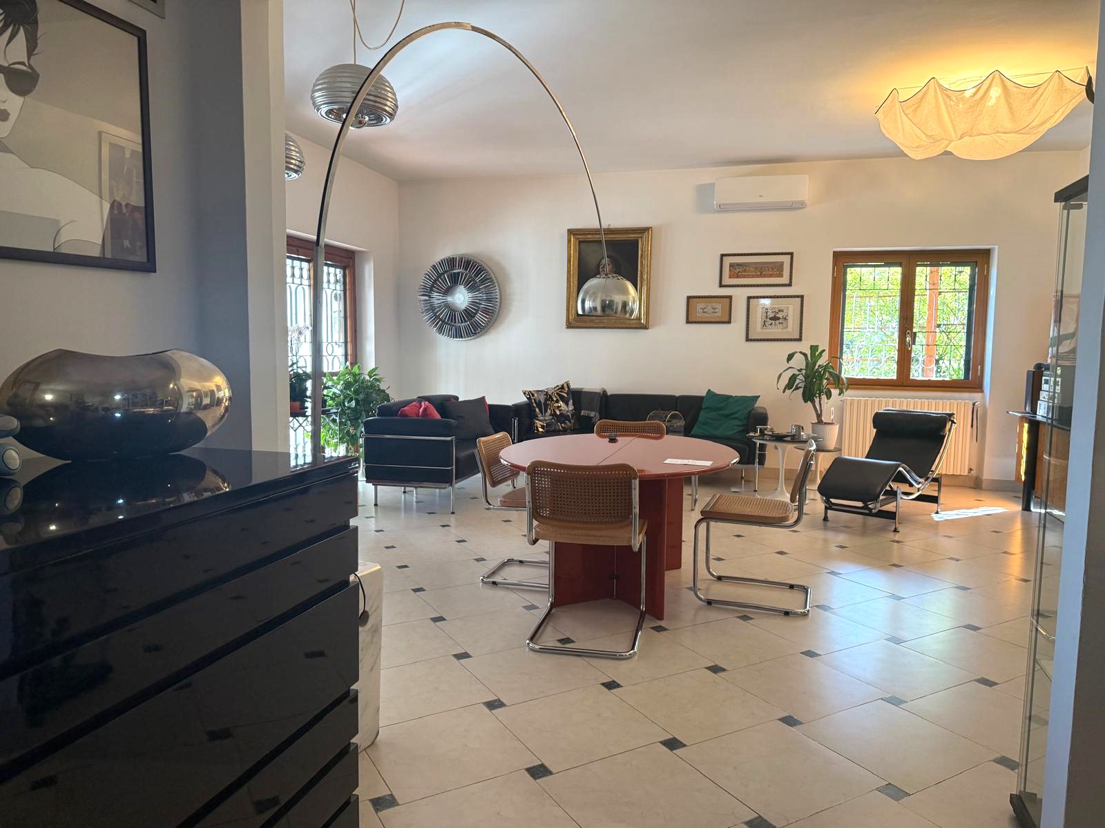 L'ampio spazio esterno è curato in ogni dettaglio offrendo armonia e voglia di stare all'aperto, ideale anche per ospitare una piscina.