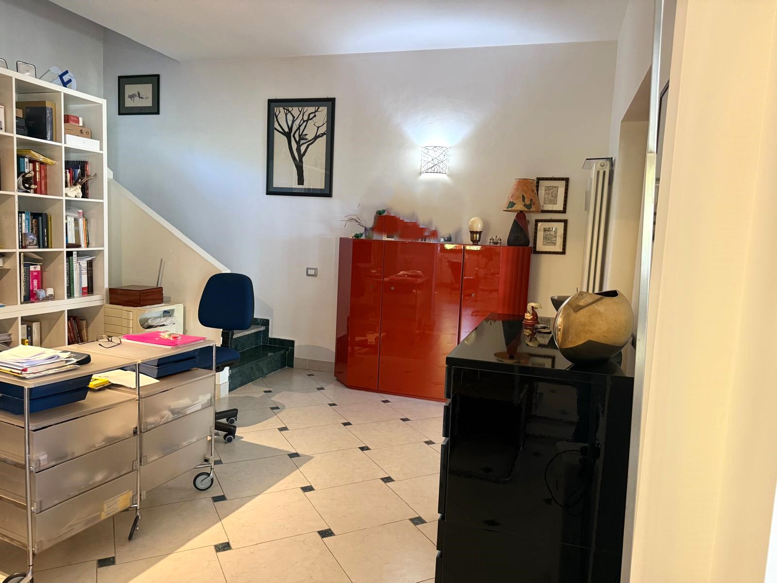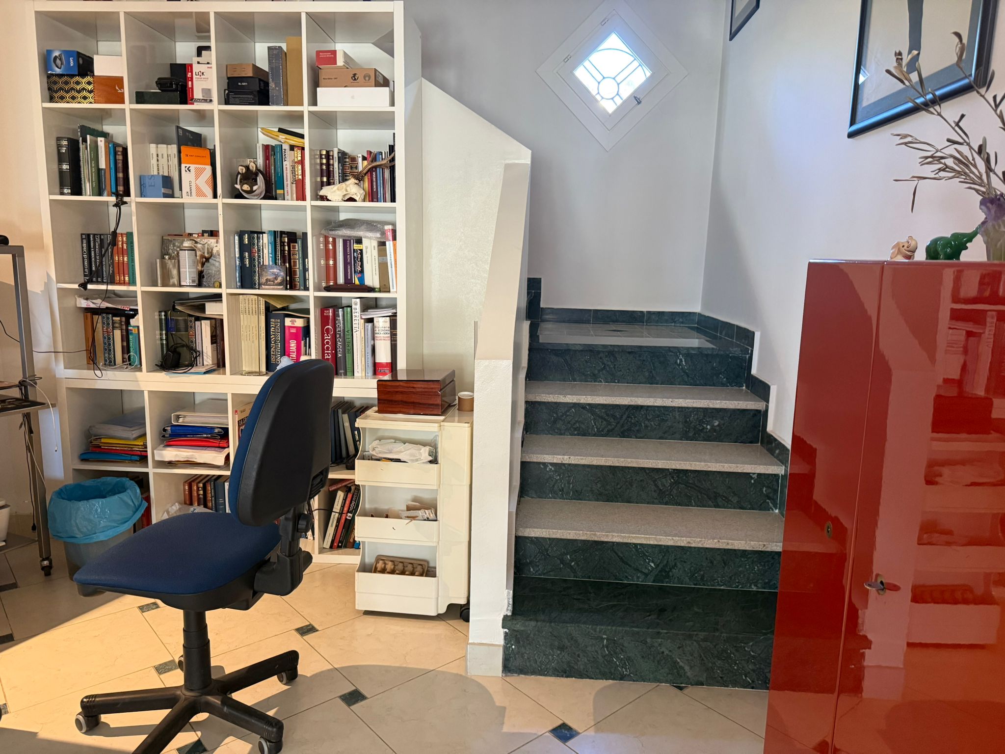 Sempre al piano terra, trovi un bagno e un angolo studio, perfetto per chi lavora da casa.