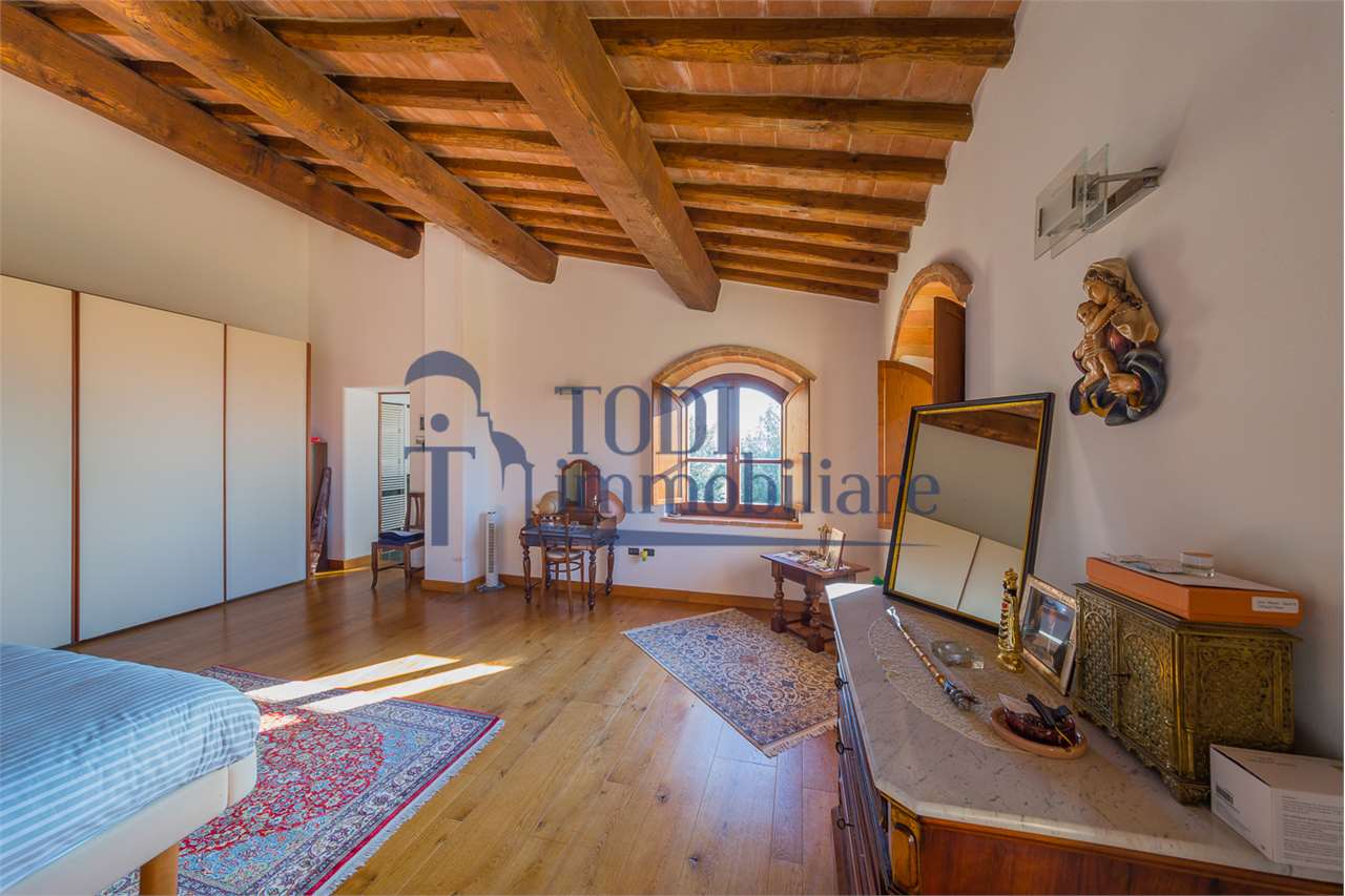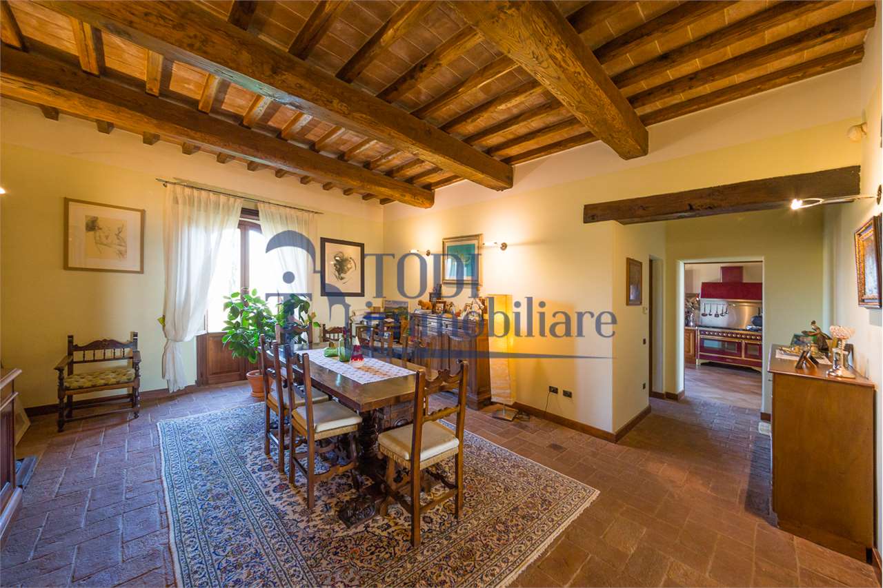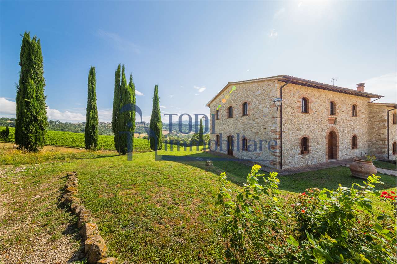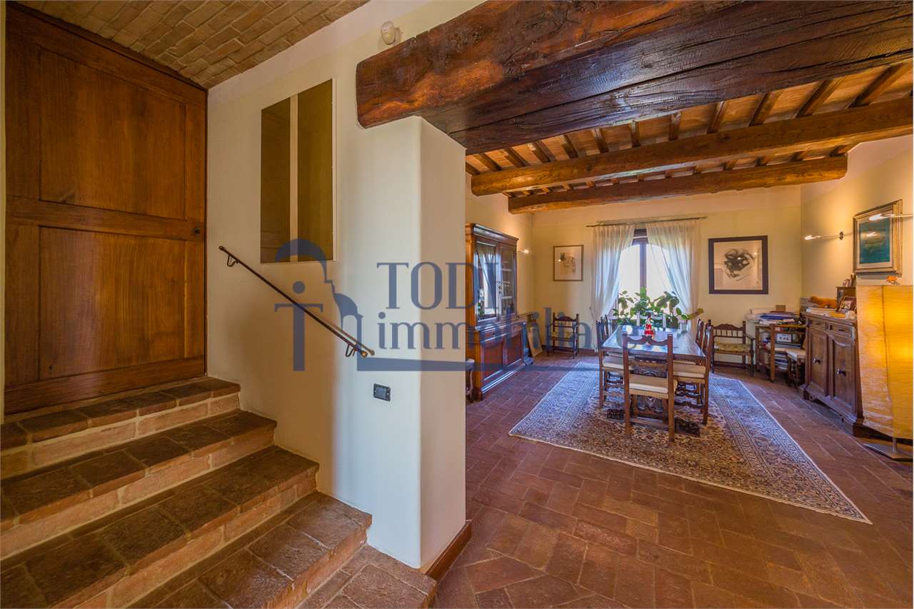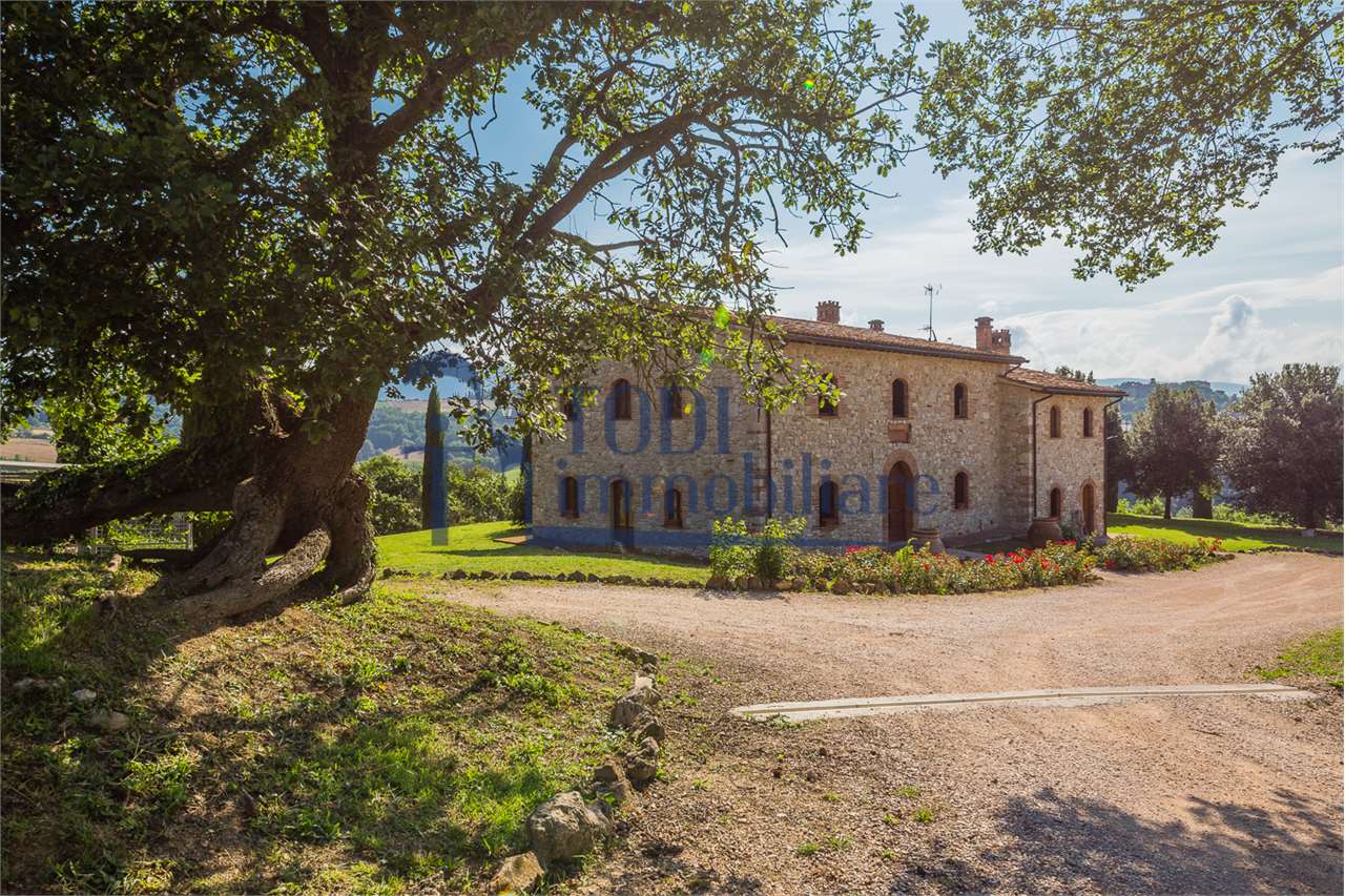 Rif. C141 – Meravigliosa residenza di campagna situata nella di Todi. Una parte della proprietà é completamente ristrutturata ed é subito abitabile, l\'altra é allo stato grezzo ed é da finire internamente. \nLa parte abitabile é costituita da un soggiorno con camino, una sala da pranzo, una cucina abitabile, un bagno e un locale dispensa/lavanderia al piano terra. Al piano primo abbiamo troviamo due camere matrimoniali e un bagno, la camera padronale di ben 37 Mq con grande bagno privato dotato sia di vasca che di doccia. \nLa parte al grezzo é composta da ingresso, grande salone di rappresentanza di oltro 80 Mq, bagno, ripostiglio e vano tecnico al piano terra.\nAl piano primo abbiamo quattro camere matrimoniali e tre bagni.\nConclude la proprietà il terreno esclusivo di 9.000 Mq che circonda completamente la proprietà, con possibilità di aggiungere ulteriore superficie a giardino. \nL’ampio spazio esterno permette la costruzione di una piscina con solarium e tutte le relative pertinenze. \nChiamaci per un appuntamento e ulteriori informazioni.