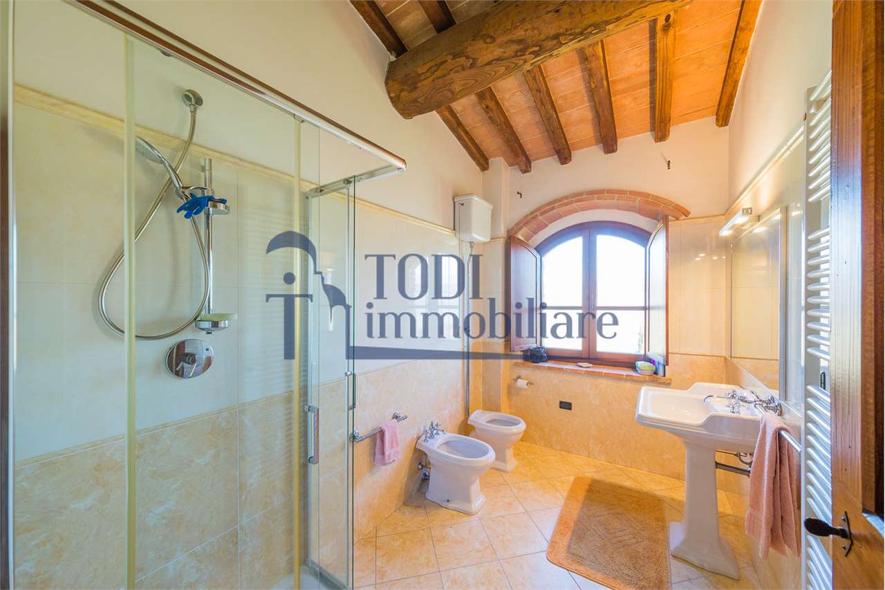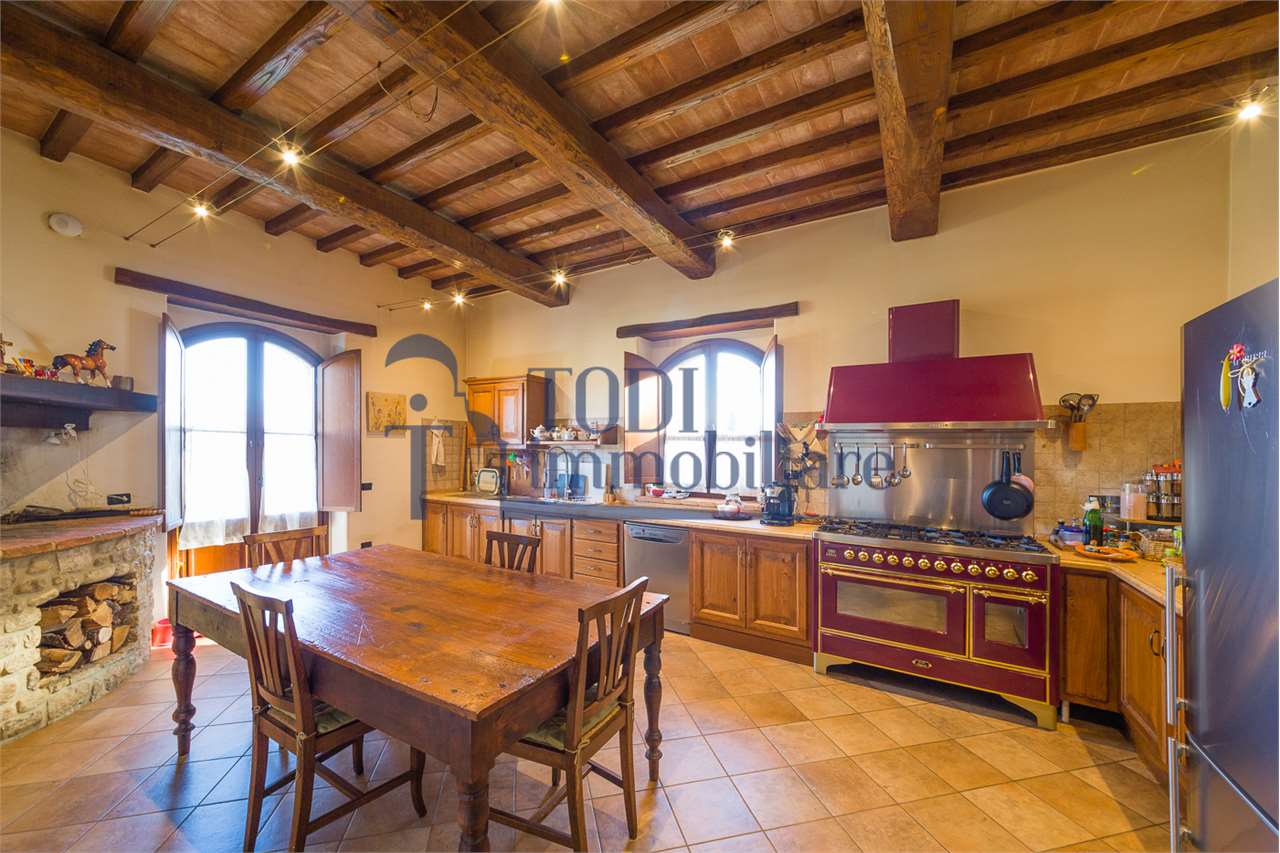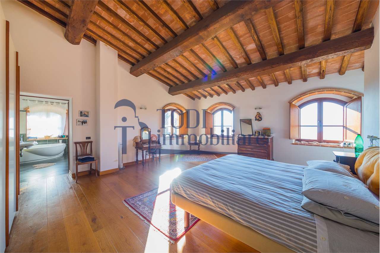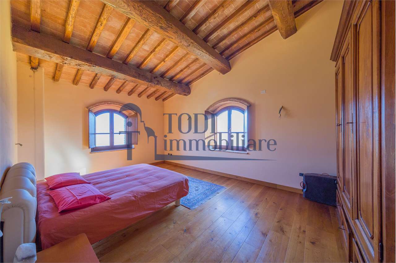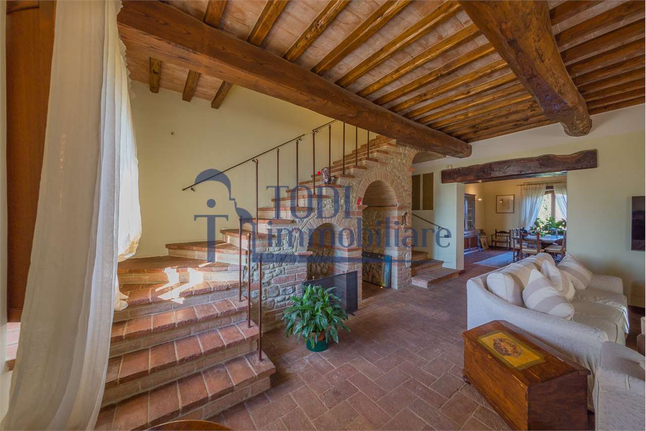Rif. C141 – Meravigliosa residenza di campagna situata nella di Todi. Una parte della proprietà é completamente ristrutturata ed é subito abitabile, l\'altra é allo stato grezzo ed é da finire internamente. \nLa parte abitabile é costituita da un soggiorno con camino, una sala da pranzo, una cucina abitabile, un bagno e un locale dispensa/lavanderia al piano terra. Al piano primo abbiamo troviamo due camere matrimoniali e un bagno, la camera padronale di ben 37 Mq con grande bagno privato dotato sia di vasca che di doccia. \nLa parte al grezzo é composta da ingresso, grande salone di rappresentanza di oltro 80 Mq, bagno, ripostiglio e vano tecnico al piano terra.\nAl piano primo abbiamo quattro camere matrimoniali e tre bagni.\nConclude la proprietà il terreno esclusivo di 9.000 Mq che circonda completamente la proprietà, con possibilità di aggiungere ulteriore superficie a giardino. \nL’ampio spazio esterno permette la costruzione di una piscina con solarium e tutte le relative pertinenze. \nChiamaci per un appuntamento e ulteriori informazioni.